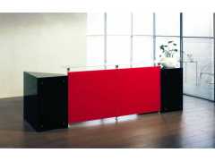 均衡的設計體現于辦公桌又醒目于接待臺系列化,臺面、支腳及側面嵌板的結合獨具匠心,通過金屬固定板的連接又巧妙地嵌于頂部。