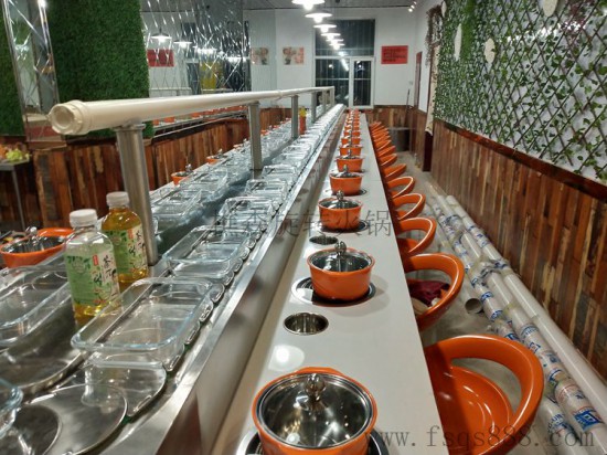佛山市樵森回轉(zhuǎn)火鍋設(shè)備傳送帶速度為0-5米/分鐘,速度可調(diào)節(jié),自助火鍋旋轉(zhuǎn)設(shè)備鏈板為特制月牙形不銹鋼鏈板,其設(shè)備安裝后,業(yè)主可根據(jù)自身情況可進(jìn)行裝修,自動(dòng)回轉(zhuǎn)火鍋?zhàn)啦团_(tái)面可用大理石或?qū)嵞狙b修,回轉(zhuǎn)火鍋設(shè)備 、火鍋傳送帶還可根據(jù)業(yè)主餐廳布置的要求,來(lái)做不同形狀,其價(jià)格合理,外觀精美,無(wú)噪音等特點(diǎn).