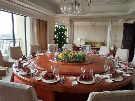 電動餐臺系列:桌子腳架是進(jìn)口橡木做的,桌面是高密度板貼木皮,轉(zhuǎn)盤自動轉(zhuǎn)(3米以上為遙控控制),帶專利電磁爐(一般為2000W),桌子內(nèi)部為鋼架結(jié)構(gòu)。易涂寶面漆,PE底漆。