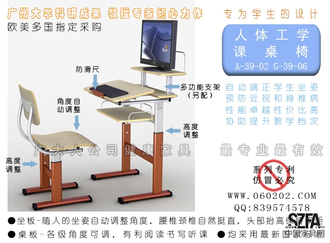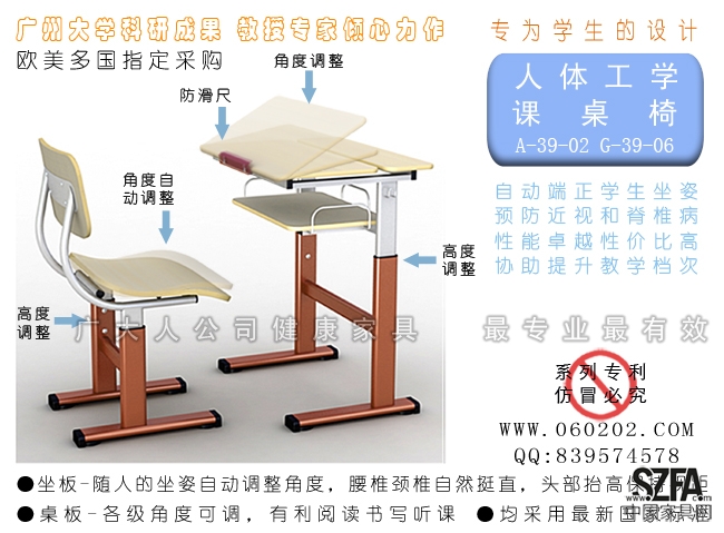 人體工學(xué)課桌椅 預(yù)防近視眼和脊椎病