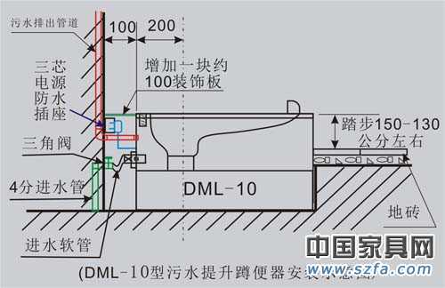 2、DML-10型:向高處或遠(yuǎn)距離排放污水,暗藏水箱(電泵沖水),壓力釋放自動(dòng)沖水。