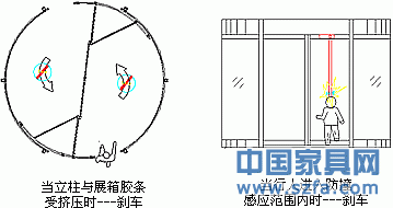 4、防碰感應(yīng)探頭:安裝在每個(gè)展箱的前部位置,當(dāng)紅外線探測到行人后,旋轉(zhuǎn)門自動(dòng)停止,防止碰撞行人;