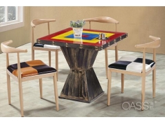 產(chǎn)品說明:此款咖啡桌鐵藝實木打造,結(jié)實耐用,水曲柳實木椅,軟包拼色工藝,美觀時尚。座感舒適