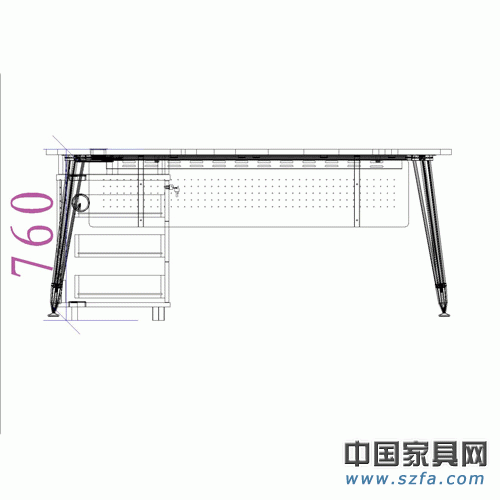 木質(zhì)擋板黑色油漆,鋼腳配有橫檔,側(cè)柜分左右,配走線槽 |