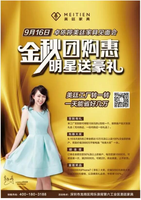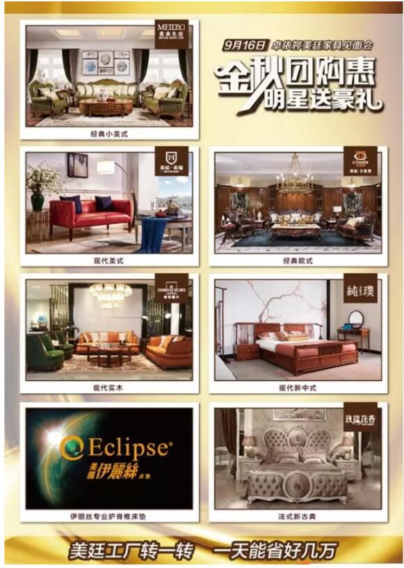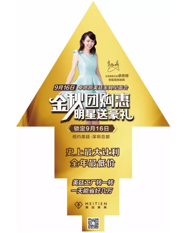 工廠直購惠,明星送豪禮,擊穿底價,美廷家具相約9.16,甜歌皇后卓依婷與您相約美廷家具廠,我們與你不見不散!