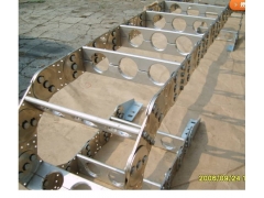 鋼鋁拖鏈的主體是由鏈板(采用優(yōu)質(zhì)鋼板經(jīng)淬火后再拋光鍍鉻/鍍鋅/噴塑處理)、支撐板(擠拉鋁合金)、軸銷(合金鋼)等部件組成.使電纜或橡膠管與拖鏈之間不產(chǎn)生扭曲變形,鏈板經(jīng)鍍鉻處理外形效果新穎,結(jié)構(gòu)合理,靈巧強度高,該產(chǎn)品鋼性好,不變形.安裝方便,使用可靠,易拆裝,不下垂.由于本產(chǎn)品外形精美,可在較大程度上增強機床設(shè)備的整體藝術(shù)美觀效果,增強我國機床,機械設(shè)備在國際市場的競爭能力。