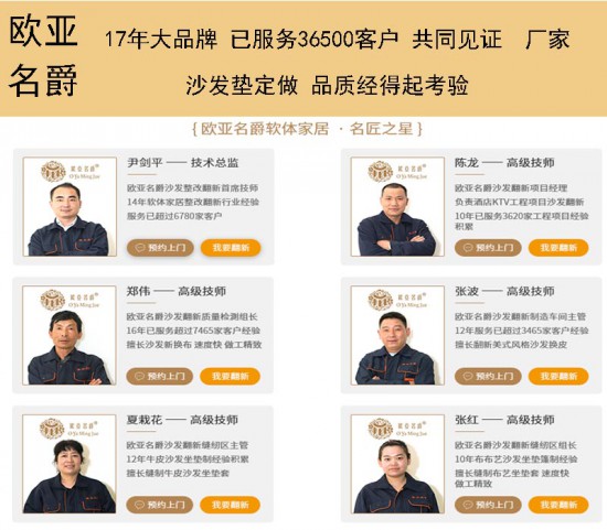 歐亞名爵沙發(fā)翻新常年為家庭、別墅、酒店、電影院、KTV、酒吧、企事業(yè)單位等提供皮沙發(fā)翻新,沙發(fā)換皮,個性化翻新、沙發(fā)墊訂做等服務(wù),一個電話免費上門,為您的沙發(fā)“煥新顏”。沙發(fā)“煩惱”就找歐亞名爵。