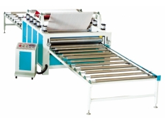 本機(jī)主要用于PVC膠片貼合在平面板材上,該機(jī)由轉(zhuǎn)動(dòng)進(jìn)料輸送架、單面涂膠機(jī),中間輸送架、單面貼面機(jī)及烤膠片系統(tǒng)出料輸送架、三次冷壓、二次熱壓整平組成,是各種平面板材裝飾貼面的理想設(shè)備。