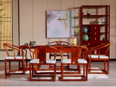 茶臺(tái)整體造型流暢生動(dòng),變化靈巧,用傳統(tǒng)經(jīng)典元素塑造出了時(shí)尚的感覺。無論是緬甸花梨木質(zhì)的色彩還是茶臺(tái)整體流暢的線條,都給人一種寧靜致遠(yuǎn)的感覺。水的包容,茶的入味,木的承擔(dān),細(xì)細(xì)品味,綿長悠遠(yuǎn),無處不在。