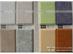 聚酯纖維裝飾吸聲板有20多種顏色,可以拼成各種圖案。表面形狀有平面、方塊(馬賽克狀)、寬條、細(xì)條。板材可彎成曲面形狀,可使室內(nèi)體形設(shè)計(jì)更加靈活多變,富有裝飾效果。甚至可以將裝飾藝術(shù)畫通過電腦復(fù)印在聚酯纖維吸聲板上。