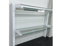 層板:底托采用1.0mm優(yōu)質(zhì)鞍鋼冷軋鋼板機加工而成,與立柱銜接固定,高度可調(diào),層板選用6mm厚單面磨砂玻璃,防腐,易清潔。護欄:12mm不銹鋼護欄,防止器皿及藥品滑落。
