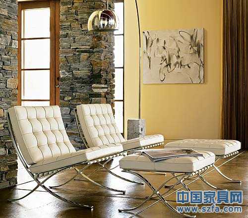 【現(xiàn)代時尚不銹鋼家具】巴塞羅那椅(Barcelona Chair)是由密斯.凡.德羅(Mies vander Rohe)在1929年為巴塞羅那世博會設(shè)計的偉大作品,開創(chuàng)了現(xiàn)代設(shè)計先河,并被德國作為禮物送給西班牙國王,這件作品被視為二十世紀(jì)最經(jīng)典的椅子流行至今。眩亮的不銹鋼和柔軟的皮革完美結(jié)合在一起,讓空間充滿了時代感。