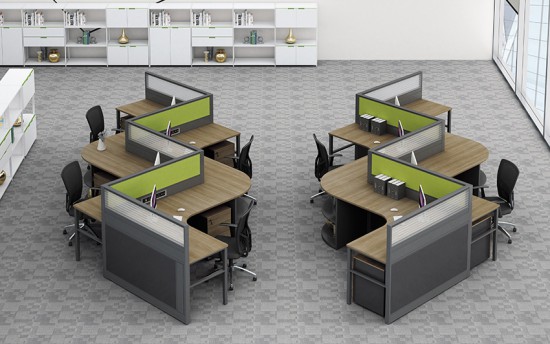 屏風(fēng):厚度有32mm,42mm或56mm三種選擇,如要求隔音效果好的可以選擇厚度高的材料。鋁合金框架,型材厚度1.5mm,表面陽極氧化處理,四向連接,方形邊蓋,屏風(fēng)可進(jìn)行水平調(diào)節(jié),屏風(fēng)踢腳及桌上走線槽具備走線分線管理功能,并預(yù)留插座開孔。材料可選:絨布、防火板、鋼板加絨布或者玻璃。