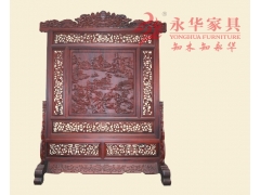 【商品詳細(xì)描述】:此十八學(xué)士屏風(fēng)通體為大紅酸枝。其頂端浮雕蝙蝠紋、龍紋,寓意富貴吉祥。屏風(fēng)中部嵌板芯,浮雕十八學(xué)士圖紋,其兩側(cè)鏤雕草龍紋,其上下格面鏤雕雙龍捧壽紋,栩栩如生,惟妙惟肖。牙板浮雕草龍紋。造型豐盈,雕工精致,節(jié)奏疏密有致,在華美中溢著空靈淡雅之韻。