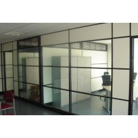 玻璃隔斷分為雙層玻璃隔斷和單層玻璃隔斷。雙層玻璃隔斷中間夾兩塊5毫米鋼化玻璃,單層玻璃隔斷中間夾一塊10毫米鋼化玻璃。單雙玻璃隔斷通用的主龍骨,可以很好的隨意轉(zhuǎn)換單雙玻璃隔墻。