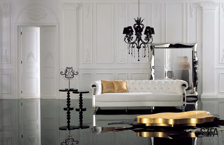 通常用于后現(xiàn)代風格的家具表面裝飾,適用于公眾場合,因此炫奢華的意味濃厚,設計師的個性得到了充足的釋放。