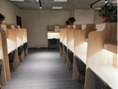 河南共享自習(xí)室桌子——屏風(fēng)學(xué)習(xí)桌|勤奮進(jìn)取 詳細(xì)信息 聯(lián)排書桌上豎著一道道高隔板。每個(gè)獨(dú)立的空間都不大,有插座和柜子。
