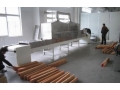微波在木材業(yè)中的應用 家具實木烘干中,特別是實木家具產品生產中,木材干燥是最頭痛的問題。我國從解放初學習原蘇聯(lián)木材加工方式而引進的蒸氣干燥木材方式一直沿用至今。這種方式雖然工藝穩(wěn)定,但耗能、費時,對堅硬樹種更難把握,木材干裂、變形大,導致木材的利用率下降,無法達到使用要求。針對以上情況,我們采用國內外最先進的高科技術手段——微波,來干燥木材。經過八年多時間的探索,和研究,突破了微波的強力穿透、發(fā)射場的均衡、以及微波的密封等重大課題,同時經過了小型生產性實驗,和定型窯的批量生產。通過家具廠、球型門鎖廠的試用,均達到客戶的要求與理想水平。現介紹它的一些特點: 1、木材內外溫度基本一致。 由于微波具有穿透木材,直接激化水分子,產生熱量,所以內部溫度還略高于外部,這樣可最大限度避免木材出現用傳統(tǒng)加熱法干燥木材的溫度梯度而產生的變形、開裂、干縮等問題,能顯著提高木材的利用率。 2、木材定型好,可直接干燥木制半成品。 經微波干燥的木材,能完全消除木材內應力,所以能干燥經初加工的木制品。打破歷來家具生產工藝是先將板、木方材干燥好后再剖成零部件進行加工的工藝,改為先將板、木方料根據家具結構的需要,先加工成各種直、曲線的規(guī)格,再進入微波干燥。這樣,一方面不再將加工中的邊角余料(約占30%)干燥,加工中的木屑、刨花(約占15%)均不進窯,既節(jié)約能源又提高了干燥窯的利用率;另外,因先下料再干燥使木材中原有缺陷不再擴展,可提高木材利用率15%-20%,其經濟效益十分顯著。 ?。场⑦x擇性加熱,干燥速度快,節(jié)約能源。 微波干燥木材的一個顯著特點是具有選擇性,含水率高的部分吸收微波多,產生的熱量大,反之則產生熱量小,加上木材是內部整體生熱,沒有熱慣性,也沒有熱傳輸損耗,所以干燥速度比傳統(tǒng)蒸氣加熱法快10倍以上,從而大大節(jié)約能源。 ?。础⒖杀3帜静牡脑珴梢嗄軞⑾x滅菌。 傳統(tǒng)干燥法因濕度大,時間長,普遍存在干燥后材質降低、變色、變黑的問題,用在家具上則降低了檔次,微波則因時間短,在干燥的過程中同時殺蟲、滅菌,且效果顯著,所以木材在微波中干燥、不變色、不降等級特別是貴重木材,使用更理想。 ?。怠⒖蓽p少干燥工藝流程,節(jié)約設備投資及場地占用,便于使用者的操作。 因為微波干燥木材一般不需浸泡、蒸煮、噴蒸等工藝流程,僅需一臺設備即可完成。因此,設備簡化、占用場地少,同時工藝簡便易實現自動化控制,操作時僅需將干燥時間設定好,到時自動停機。全過程沒有毒氣體或有毒有害液體外排,因此,屬于環(huán)保設備 除上述五大特點外,微波干燥木材特別適用于木材初含水率在25%左右,干至終含水率10-8%或更低,其干燥成本在150度/M3左右,對成型的半成品干燥因減少開裂、變形一項就可節(jié)約木材15%以上,這對價格較貴重的木材更顯出其價值來,經濟效益十分顯著。因此,在國家大力提倡保護生態(tài)環(huán)境、節(jié)約木材、節(jié)約能源,降低成本和消除污染的情況下,微波干燥木材以其干燥速度快、干燥質量好,木材利用率高等特點,將會被家具及木材加工行業(yè)廣泛地應用而顯示出美好的前景。 |