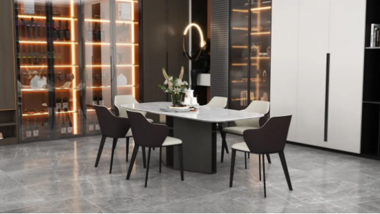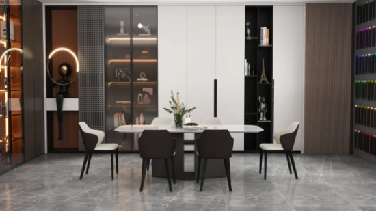 CBD家居·黑金 | HZ201餐臺,潤白大理石臺面清新雅致,幾抹水墨紋營造古韻,方形設(shè)計邊角圓弧化處理,增添人文關(guān)懷,為用餐時光注入更多溫情,舒享三餐四季。