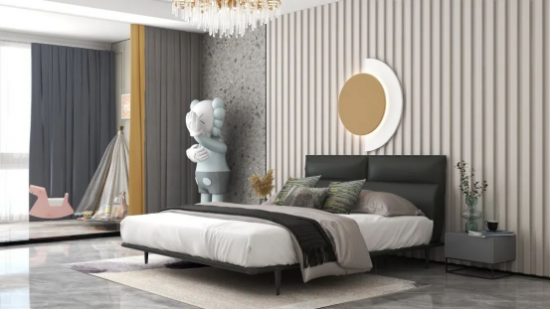 高級灰優(yōu)雅凝練,演繹CBD家居·白金 | BS082-1軟床的中性之美,穩(wěn)靜是底色,暖燈光線下自有溫婉意蘊,獨立靠包簡約個性,床尾褶皺設(shè)計彌足藝術(shù)感,讓睡眠環(huán)境更加優(yōu)質(zhì)。