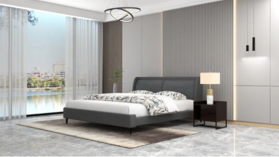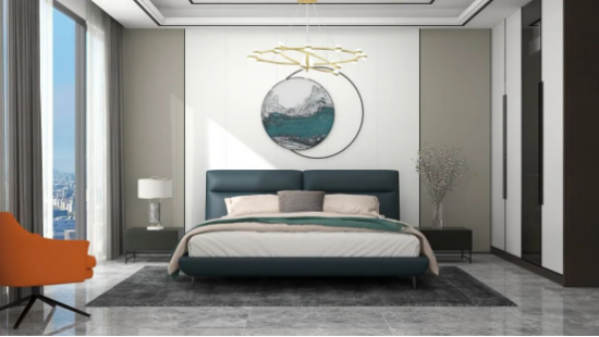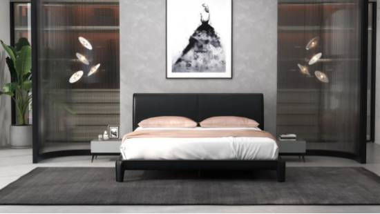 通體的黑色皮質(zhì)集舒適觸感與美觀度于一體,泛著光澤,演繹不動(dòng)聲色的輕奢質(zhì)感,低調(diào)沉穩(wěn),打造出品質(zhì)臥室~
