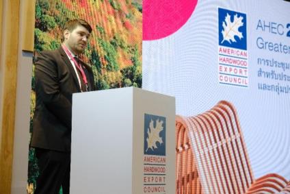 來(lái)自 AHEC弗吉尼亞州總部的Tripp Pryor先生向與會(huì)嘉賓們展示了美國(guó)如何保持著世界最大的闊葉木木材出口國(guó)地位,其占全球市場(chǎng)價(jià)值近三分之一。他表示,東南亞地區(qū)對(duì)木材種類的需求正在擴(kuò)大,而美國(guó)闊葉木對(duì)泰國(guó)出口呈年增長(zhǎng)49%的驚人態(tài)勢(shì)。他在講話中也談到現(xiàn)有全球認(rèn)證體系的一些局限性,并特別介紹了目前AHEC正在開(kāi)發(fā)的改進(jìn)認(rèn)證系統(tǒng)的一些初步階段。該系統(tǒng)是“可持續(xù)闊葉木聯(lián)盟”(Sustainable Hardwood Coalition)的一部分,與倫敦皇家植物園的世界森林ID(World Forest ID)聯(lián)盟等合作伙伴共同開(kāi)發(fā),用以建立最大的地理參考開(kāi)源森林樣本合集,以應(yīng)對(duì)欺詐、非法采伐和砍伐。