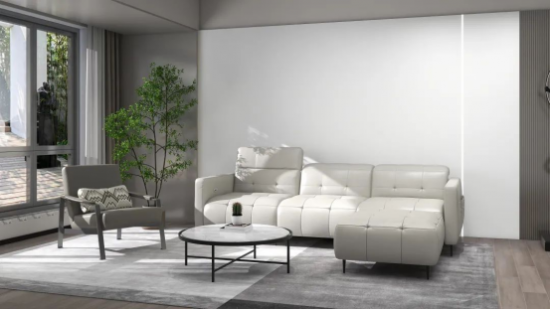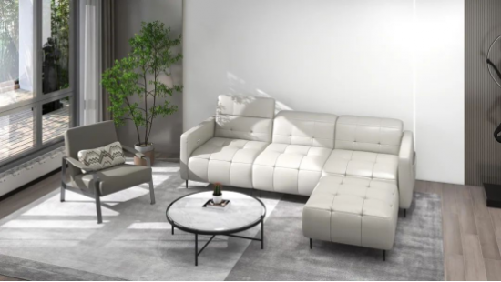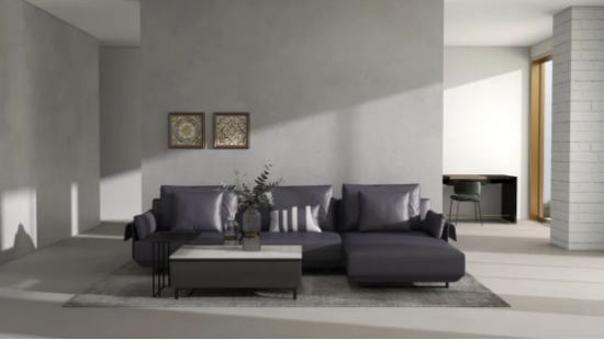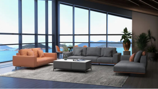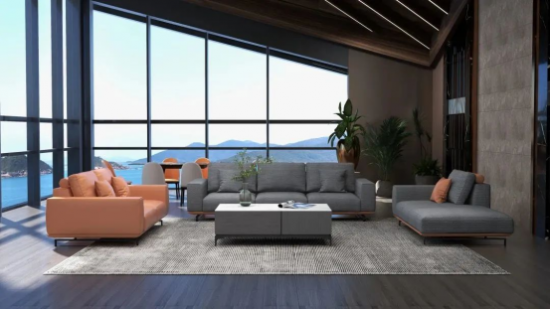沙發(fā)構(gòu)型低矮,線條感簡(jiǎn)約流暢