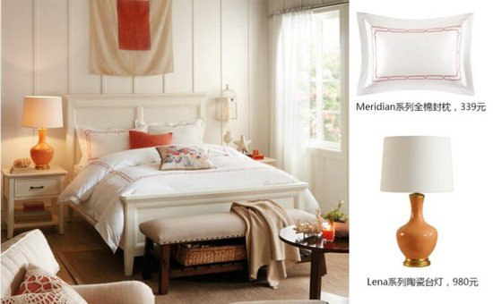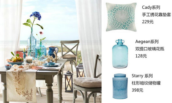 兩個(gè)色彩冷暖融匯,重點(diǎn)出現(xiàn)在Harbor House家紡和飾品中。多款美式靠墊、花瓶、毛巾和首飾盒春夏新品,都采用大面積純色,綴以水洗、立體繡花等工藝,凸顯色彩本身的自由與溫柔。在美式床品設(shè)計(jì)上,則主要運(yùn)用珊瑚、??⒎被▓D案,點(diǎn)睛休閑家居搭配。