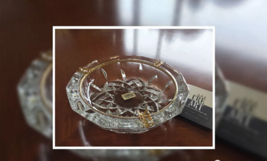 細節(jié)彰顯品質,金色環(huán)圈的點綴給玻璃材質的煙灰缸增添了一抹精致的奢華。