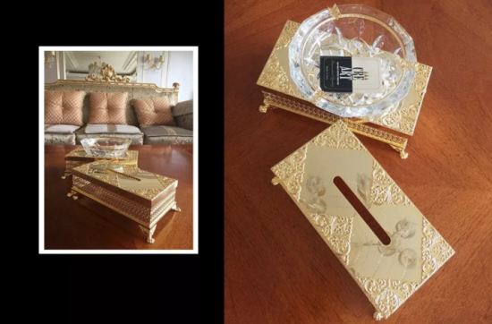 雖然只是小小的一個抽紙盒,其金色飾面足以凸顯奢華,在客廳當中成了最引人注目的點綴。