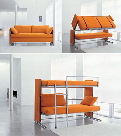 沙發(fā)和床糾纏不清的設(shè)計(jì)的確是不少,但是之前聽(tīng)到的那些,無(wú)論如何的變換,都始終是從沙發(fā)變成一個(gè)床,這一次的這個(gè)大黃蜂就更牛一些,可以變成雙層床!