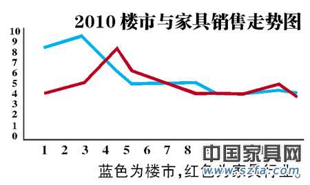 2010年4月17日與9月29日,國家為了遏制房價(jià)過快上漲,相繼出臺兩輪調(diào)控政策,豈料樓市價(jià)格青云直上。處于房地產(chǎn)行業(yè)下游的家居行業(yè)不得不遭受牽連。不過,家具、家紡、餐廚用品、裝修裝飾等在內(nèi)的行業(yè)會有2~3個月的滯后期,所以,2010年的五一長假,廠商依然能賺個盆滿缽滿。其后,市場陷入慘淡期。