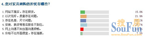 眾所周知,網購的好處是方便、便宜,但是對于家居商品而言,它所涉及的硬傷卻不少。在“您對家具網購的擔憂有哪些?”的題目中,網友對于質量、價格、溝通、售后服務等問題的投票都較為平均,而“安裝、換貨等售后等售后服務不到位”以23.7%的比例首當其沖,而“以次充好”、“存在色差”等眾多問題也讓消費者對家具網購不得不考慮多三分。