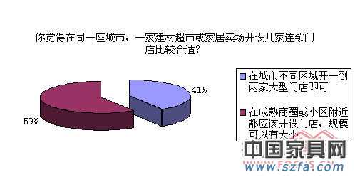 那么對于目前由于賣場“瘋狂”擴張所引發(fā)的廠商爭議,消費者又是如何看待的?從調(diào)查結(jié)果來看,大多數(shù)網(wǎng)友對于賣場的擴張還是保持了肯定的態(tài)度,有59%的網(wǎng)友表示在成熟商圈或小區(qū)附近都應(yīng)該開設(shè)門店,但規(guī)??梢杂写笮?。另有41%的網(wǎng)友表示,在城市不同區(qū)域開一到兩家大型門店即可。這點,反映了消費者對于大店,同城不宜多,但對于小店,便利多開的觀點。此前我們在征詢企業(yè)意見時,圣象集團市場部總經(jīng)理王曉宇也曾表示:賣場在大城市可以開,但要換個模式。比如一個北京可以容納多少個大型蘇寧,我想一個夠了。現(xiàn)在更多是變成了社區(qū)蘇寧。超市來講,世紀(jì)聯(lián)華,它開了很多大的以后,現(xiàn)在它在開小的。所以像紅星美凱龍,居然之間,可能你有大紅星美凱龍,大居然之家,可能以后你要有小居然之家,小紅星美凱龍,甚至三級城市仍然需要這種業(yè)態(tài),像電器,國美遠(yuǎn)不是原來恒基大廈里面那么大的一個,這種的它也需要,但反而一個小蘇寧、小國美,現(xiàn)在在北京有很多這樣的業(yè)態(tài)。