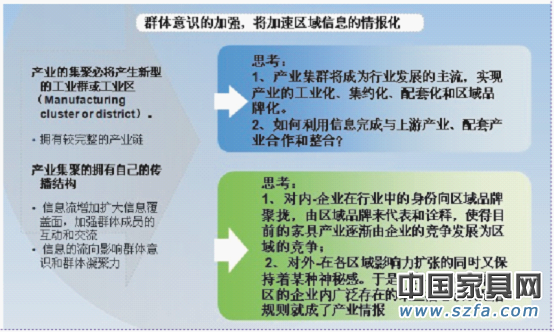 我們可以將這一系列不同的已經(jīng)成形的家具產(chǎn)業(yè)集群看作是中國家具產(chǎn)業(yè)版圖上一個個“村落”,信息傳播則成了“村民”之間的互串門子。