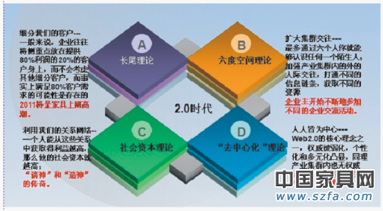一些基于Web2.0技術(shù)支撐而得以彰顯的傳播理論包括:六度空間理論、長(zhǎng)尾理論、社會(huì)資本理論、去中心化理論等等,實(shí)際上在產(chǎn)業(yè)集群這一相對(duì)具象化的群體傳播小環(huán)境中表現(xiàn)得更加明顯。所以,我們需要研究如何分別將這樣的理論滲透進(jìn)企業(yè)傳播中來(lái),形成傳播新規(guī)則。
