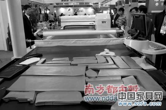 記者在現(xiàn)場看到,工作人員將一套皮沙發(fā)所用的各個部位圖案輸入電腦,一兩分鐘即計(jì)算出最節(jié)省材料的排列組合方式,隨之快速完成裁剪。和鷹機(jī)電銷售經(jīng)理邱華偉介紹,這種軟性材料裁剪系統(tǒng),之前主要運(yùn)用在箱包、衣服等領(lǐng)域,而針對家具還屬于新的嘗試。
