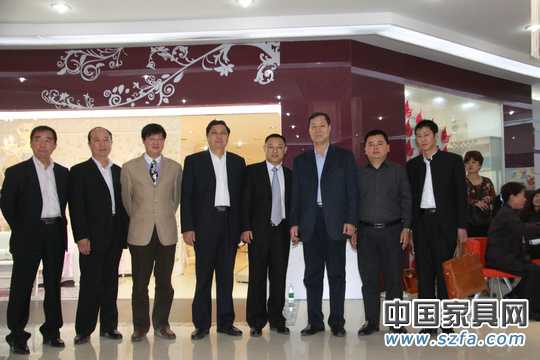 劉金良副理事長(右三)眾多行業(yè)協(xié)會領(lǐng)導同金天拓家具胡曉寒董事長(右四)合影