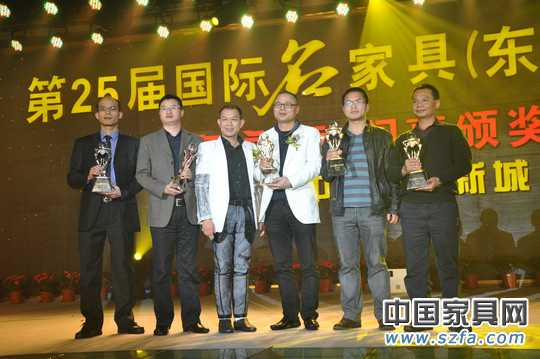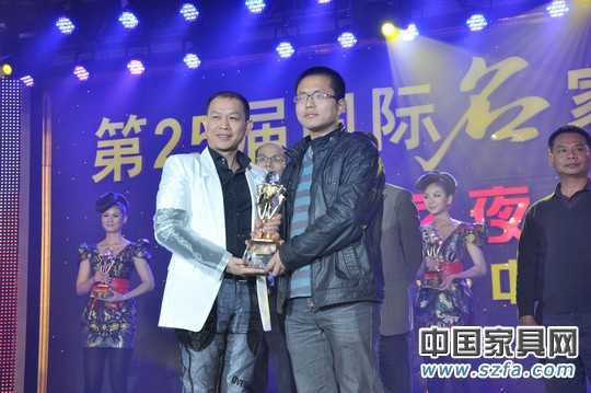 現(xiàn)場獲獎?wù)掌ń鹛焱丶揖哂邢薰径麻L助理胡名波先生(右2)代表公司領(lǐng)取“最佳工藝獎”獎杯)