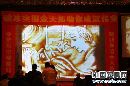 戰(zhàn)略發(fā)布會后,金天拓家具還舉辦了熱烈喜慶的答謝晚宴,向與會嘉賓奉獻(xiàn)上了一臺精彩節(jié)目,如墨舞、沙畫、冰上芭蕾、肚皮舞、魔術(shù)等節(jié)目,讓人耳目一新,陶醉不已。