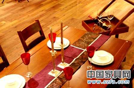 中西合璧的餐桌布置,典型的中式餐桌配西式燭臺,中規(guī)中矩中透著洋味,既體現(xiàn)出中式實(shí)木家具的厚重樸實(shí),又散發(fā)著淡淡的歐式浪漫情調(diào)。