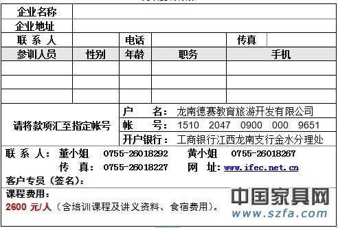 【培訓(xùn)地址】: 江西龍南 中國(深圳)家具產(chǎn)業(yè)教育學(xué)院