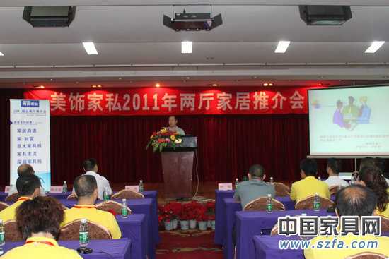 2011年7月2日上午,美飾家私2011年新品兩廳推介會在成都雙流棠湖賓館隆重舉行。 在會上,美飾家私管理層分別從不同的角度向廣大經(jīng)銷商作了未來規(guī)劃的詳細闡述。