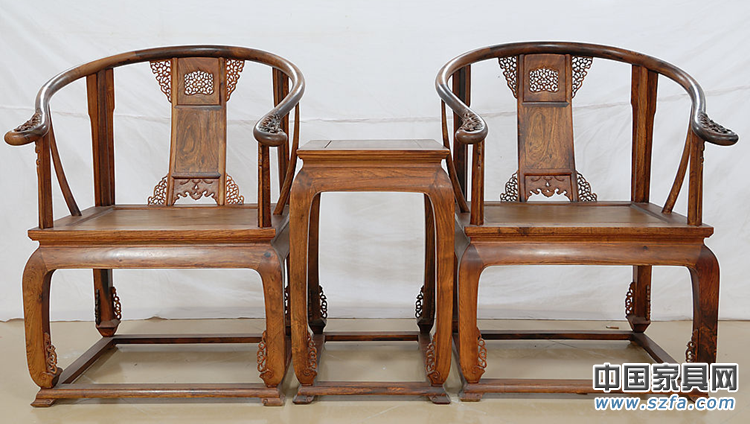 圈椅,又稱羅圈椅,最顯著特征就是其后背靠與扶手是由一條起伏流暢的曲線組成,它的后背與人體的脊柱吻合,極致地發(fā)揮了舒適性,上部圓曲線與下部方正直線互相呼應(yīng),體現(xiàn)了中國(guó)人的方圓宇宙觀,是明代家具典型代表之一。