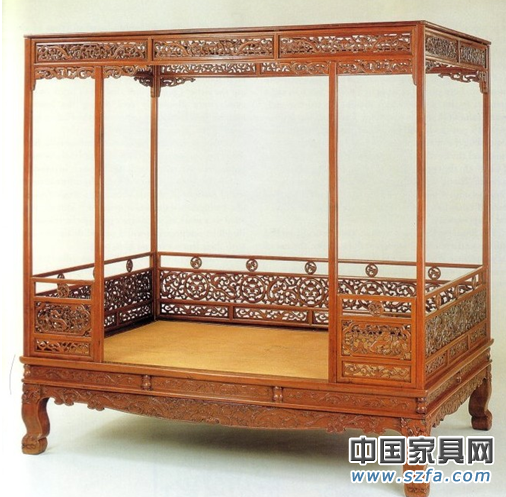 不論是羅漢床、架子床,還是大大的拔步床,都體現(xiàn)了古人床榻多功能的特征,展現(xiàn)了古人的聰明才智。紋飾圖案往往會(huì)以吉祥山水、梅蘭竹菊等雅物、龍鳳龜獅等瑞獸以及詩(shī)書文字為主題,或采用大理石形成的自然山水為背景,突出木質(zhì)的自然紋理,體現(xiàn)了人與自然天人合一的思想理念。