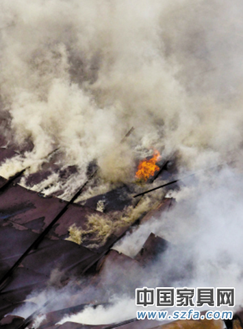 失火的家具城四周緊靠著多家家具城,不少家私店老板怕火勢繼續(xù)蔓延,爭先恐后地叫來了貨車將貴重的實木家具、真皮沙發(fā)打包運走。記者看到,在家具城出口的路段,幾輛大貨車為“搶道”發(fā)生了刮擦,引發(fā)了該路段塞車。由于火災現(xiàn)場距離北邊的沙窖東村居民樓只有不到3米的距離,消防官兵還根據(jù)火勢借用民居二樓進行噴水。