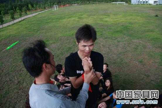 天公不作美,拓展訓(xùn)練的中途突然下下起了大雨,大家一下子被淋成了落湯雞,但是依然堅(jiān)持完成戶外拓展項(xiàng)目,“你們準(zhǔn)備好了么?”“準(zhǔn)備好了?。?!”“我要倒下了!”“我們接住你?。?!”,拓展的時候這幾句對話不斷回蕩在訓(xùn)練場地上,臺下,一個個馬步扎穩(wěn),全神貫注,一雙雙堅(jiān)定的手交織搭在一起時刻準(zhǔn)備接著臺上即將倒下的同伴,臺上,雙手被綁,緊抱在胸前,兩眼一閉,身體挺直,倒下然后穩(wěn)穩(wěn)地被接?。∵@就叫做信任背摔,不管是哪一個上面的人倒下,下面的人總會安全接住他,風(fēng)雨無阻!信任是互相的,你不信任你的隊(duì)友,你就不敢倒下,你沒有責(zé)任心你就不會緊握住各自的臂膀,接不住倒下的隊(duì)友!