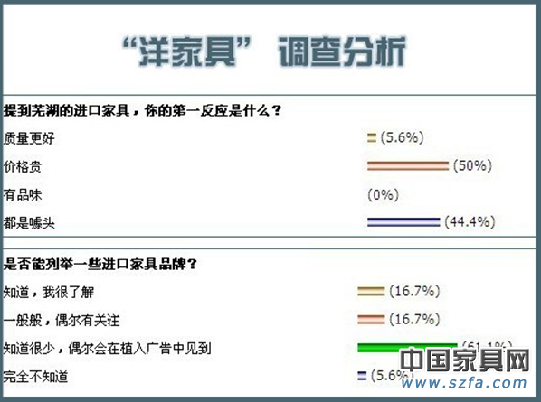 品牌的第一印象很重要,通過(guò)調(diào)查結(jié)果,小編注意到,本地市民對(duì)于進(jìn)口家具的首要感覺就是價(jià)格更貴和產(chǎn)品宣傳噱頭,對(duì)“洋家具”的直觀印象不是很好,對(duì)進(jìn)口家具品牌也只是通過(guò)一些植入廣告才了解,本地的家居賣場(chǎng)上進(jìn)口家具較少,消費(fèi)者也沒有選購(gòu)意識(shí)。