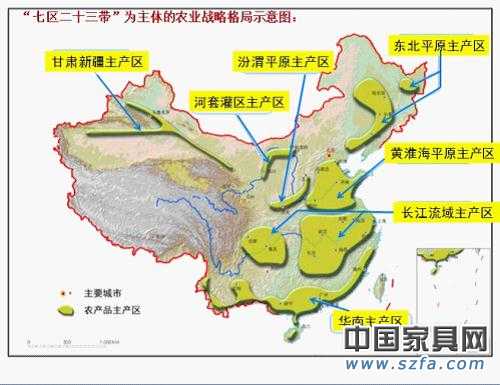 “七區(qū)二十三帶”為主體的農業(yè)戰(zhàn)略格局示意圖: