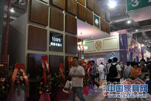 歐木軒家具在展位上醒目標(biāo)注“100%純木”,并用木頭拼接制作一個(gè)大大的歐木軒logo,但是所謂“純木”,實(shí)在有點(diǎn)混淆概念之嫌,應(yīng)該實(shí)木顆粒板也是可以歸納到純木范疇之內(nèi)的。但是如果純木概念能為消費(fèi)者所接受,也可能和“板木”家具一起,成為未來(lái)家具發(fā)展的另一種趨勢(shì)。